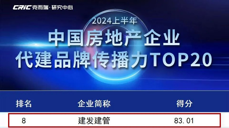 建發(fā)建管上榜克而瑞房地產(chǎn)企業(yè)代建兩大榜單