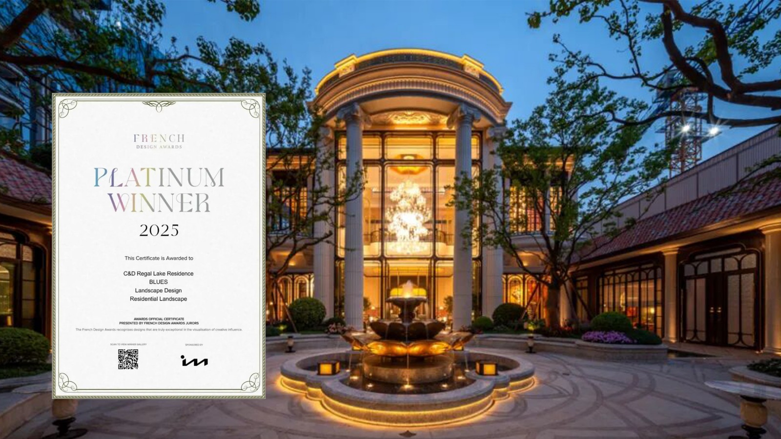 此外,建發(fā)房產(chǎn)“華”字產(chǎn)品系項目宸啟瑞湖和瑞湖公館獲得法國設計獎——年度地產(chǎn)示范區景觀(guān)類(lèi)別最高榮譽(yù)“鉑金獎”,體現業(yè)內對項目設計美學(xué)與創(chuàng )新力的認可。