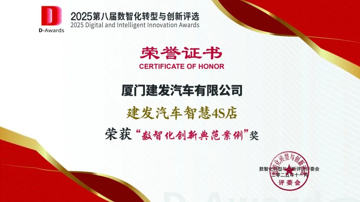 建發(fā)汽車“智慧4S店”項目獲全國“數智化創(chuàng)新典范案例”獎