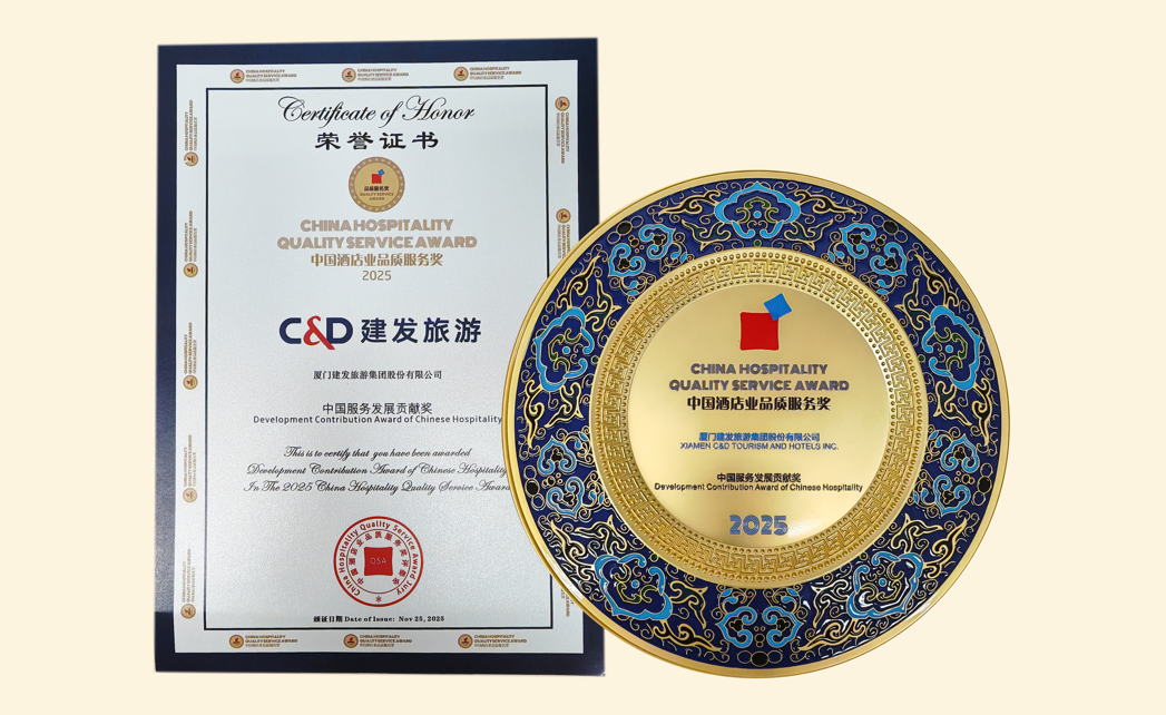 Recently, at the Eighth China Hotel Service Innovation Forum and the 2025 China Hotel Industry Quality Service Awards Ceremony organized by the China Hotel Forum and the China Hotel Alliance, C&D Tourism Group was awarded the “China Service Development Contribution Award.”