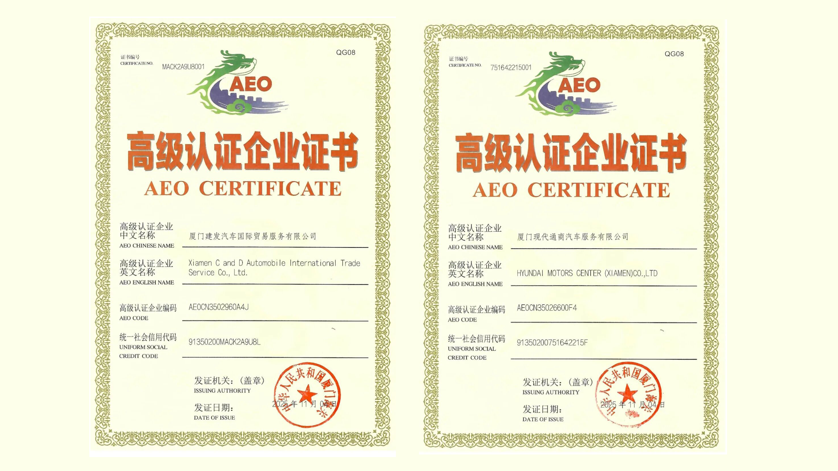 建發(fā)汽車(chē)旗下兩家公司通過(guò)AEO認證